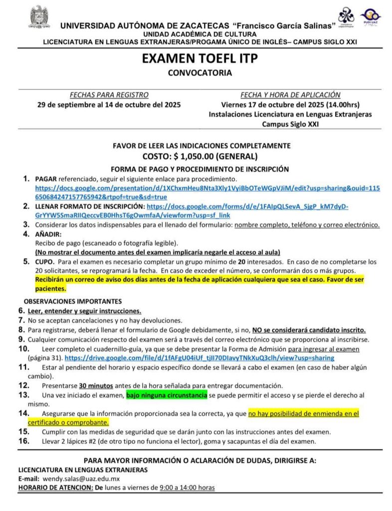Inicio Bienvenido| Welcome| Bienvenue| Benvenuto| Willkommen Conócenos PropósitosHistoriaAdministración 2025-2029Plan de DesarrolloDocentesInstalaciones Aspirantes Perfil de ingreso/ egresoAdmisiónMapa curricularTríptico informativo Estudiantes TutoríasPrácticas ProfesionalesServicio SocialCalificacionesEducación a distanciaDescargasCALEX Egresados TitulaciónSeguimiento de egresados 2025Bolsa de trabajo LILEXVinculación UAZ Normatividad InstitucionalInterna Sitios de interés Universidad Autónoma de Zacatecas Servicios EscolaresServicios Estudiantiles (CASE)Centro de Información Siglo XXIBiblioteca CentralMovilidad e IntercambioProyectos FederalesGenerar Ficha de Pago Horario Semestre Agosto – Diciembre 2025 Noticias Eventos Noticias Becas de Hospedaje y Alimentación (Ago-Dic 2025) Evaluación al desempeño docente (Enero-Julio 2024) Becas institucionales de movilidad estudiantil (Agosto- Diciembre 2024) Convocatoria de Nuevo Ingreso Agosto- Diciembre 2024 Eventos Jornadas Culturales 2025Festival Mexicano 2024Festival del Queso, Pan y Vino 2024Oktoberfest 2024Semana de la Salud Mental 2024