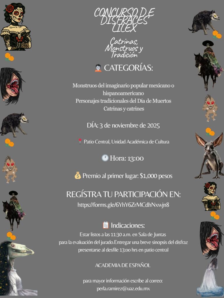Inicio Bienvenido| Welcome| Bienvenue| Benvenuto| Willkommen Conócenos PropósitosHistoriaAdministración 2025-2029Plan de DesarrolloDocentesInstalaciones Aspirantes Perfil de ingreso/ egresoAdmisiónMapa curricularTríptico informativo Estudiantes TutoríasPrácticas ProfesionalesServicio SocialCalificacionesEducación a distanciaDescargasCALEX Egresados TitulaciónSeguimiento de egresados 2025Bolsa de trabajo LILEXVinculación UAZ Normatividad InstitucionalInterna Sitios de interés Universidad Autónoma de Zacatecas Servicios EscolaresServicios Estudiantiles (CASE)Centro de Información Siglo XXIBiblioteca CentralMovilidad e IntercambioProyectos FederalesGenerar Ficha de Pago Horario Semestre Agosto – Diciembre 2025 Noticias Eventos Noticias Becas de Hospedaje y Alimentación (Ago-Dic 2025)Evaluación al desempeño docente (Enero-Julio 2024)Becas institucionales de movilidad estudiantil (Agosto- Diciembre 2024)Convocatoria de Nuevo Ingreso Agosto- Diciembre 2024 Eventos Oktoberfest 2025 Jornadas Culturales 2025